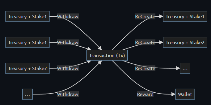 * The number of output treasury (credential, datum, stake) can be reduced to 5 (another can be spent without creating new ones)